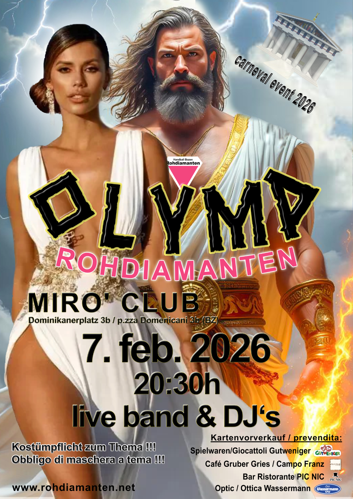 Es ist soweit. Das Faschingsfest 2026 der Rohdiamanten unter dem Motto „OLYMP“ findet wieder statt.